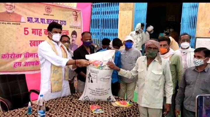 सागर जिले के राहतगढ़ ब्लाक के ग्राम झिला में आज राजस्व एवं परिवहन मंत्री गोविंद सिंह राजपूत पहुंचे जहां पर उन्होंने राशन दुकान पहुंच कर सरकार द्वारा निशुल्क राशन वितरण प्रणाली के तहत 5 माह का खाद्यान्न गेहू ,बाजरा एवं अन्य साम्रागी वितरित की उन्होंने कहा की जिन लोगो की पर्ची नहीं है उनको भी खाद्यान्न वितरण किया जाए मंत्री ने कहा कि यह महामारी नगरों के साथ-साथ ग्रामीण क्षेत्रों में भी अपने पैर पसार रही है अतः समस्त ग्राम वासियों से अनुरोध है कि वैक्सीन टीका जरूर लगवाएं कार्यक्रम के दौरान मंत्री ने लोगों के लिए दवाई की निशुल्क किटे माक्स भी वितरित किए कार्यक्रम के दौरान लोग कोरोना गाइडलाइन का पालन करते दिखे । इस दौरान ग्रामवासी जनप्रतिनिधि एवं प्रशासनिक अधिकारी मौजूद रहे