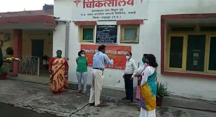 म.प्र.पॉवर जनरेटिंग कंपनी लि.चिकित्सालय चचाई में भारतीय मजदूर संघ बिजली कर्मचारी महासंघ के सदस्यो ने अंतरराष्ट्रीय नर्स दिवस पर सभी नर्सिंग स्टाफ एवं डॉक्टर, स्वच्छता सैनिक व सभी चिकित्सा कर्मियों का पुष्पवर्षा कर पुष्पगुच्छ से स्वागत सम्मान किया,साथ ही मिष्ठान पैकेट व सेनेटाइजर प्रदान कर बधाई धन्यवाद प्रेषित की।