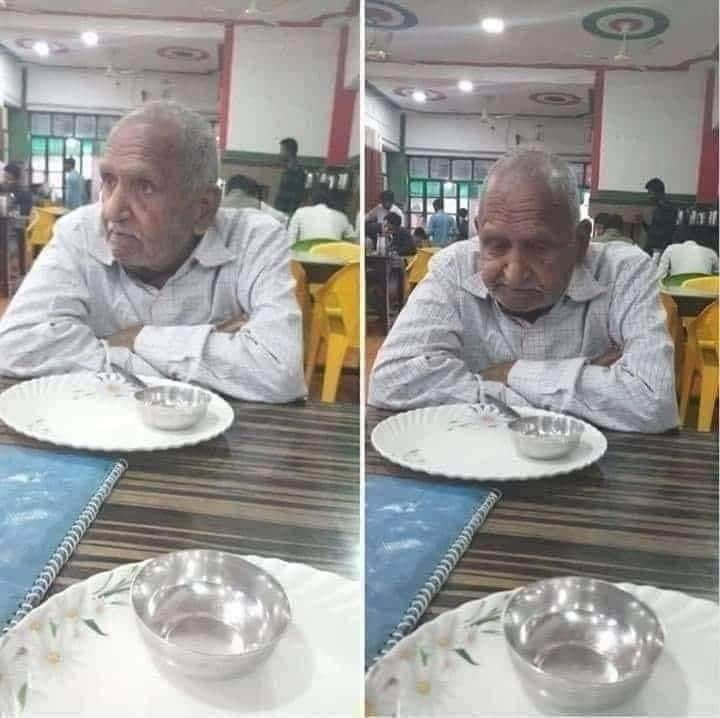 के लिये एक अच्छे रेस्टोरेंट में लेकर गया। खाने के दौरान वृद्ध पिता ने कई बार भोजन अपने कपड़ों पर गिराया।