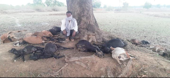 आकाशीय बिजली की चपेट में आई 16 बकरियों की मौत,2 घायल