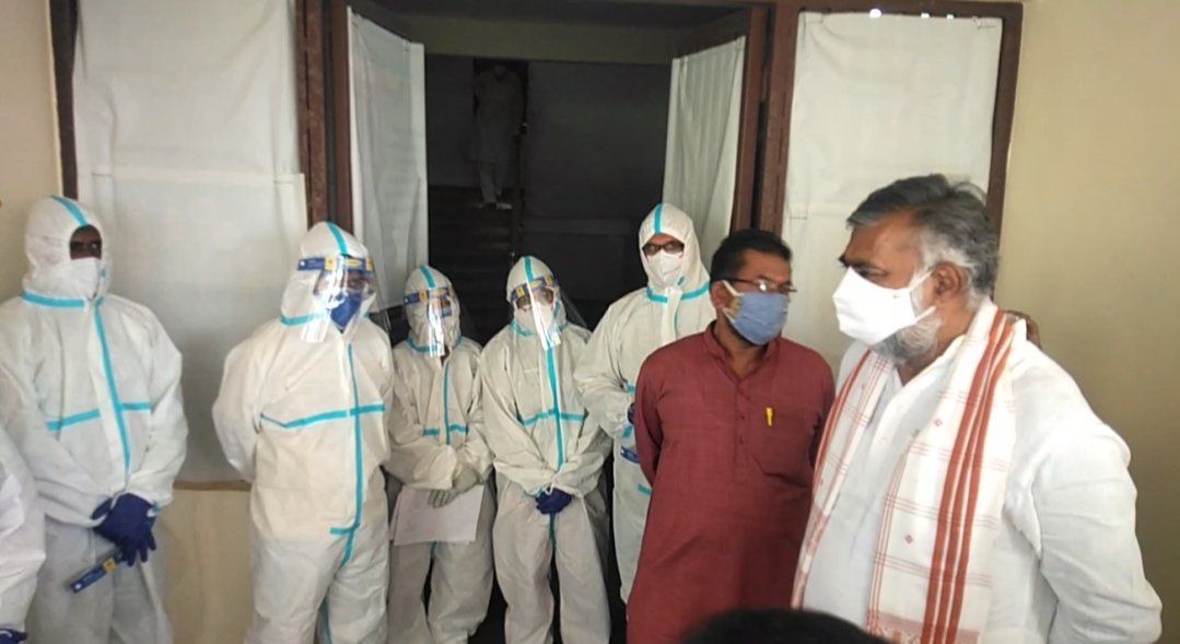 बंडा।गुरूवार को केंद्रीय मंत्री प्रहलाद सिंह पटेल ने कोविड-19 सेंटर का निरीक्षण किया गस दौरान सेंटर मरीजों को मिलने वाली सुविधाओं एवं सेंटर मे कार्य कर रहे डॉक्टर स्टाफ नर्स से चर्चा की और मरीजों को किसी भी प्रकार की असुविधा ना हो समय समय पर दवाई अन्य सुविधाएं मिलती रहें और बंडा सामुदायिक स्वास्थ्य केंद्र के बीएमओ डॉक्टर आरिफ कुरैशी पॉजिटिव हुए हैं ईश्वर से कामना करता हूं कि स्वस्थ होकर अपनी सेवाएं कोविड सेंटर मे दे सकें सीएमएचओ से स्टाफ एवं डॉक्टर की कमी दूर करें बंडा विधानसभा के लोगों को इलाज मिल सके छत पर खड़े कोरोना पॉजिटिव मरीजों से बात की आप लोग हिम्मत से काम ले कोरोनावायरस से हम जीतेंगे। वहीं एक और मंत्री के यहां सिकायात आई बिनैका की ग्रामीणों ने शिकायत की और कहा थाना प्रभारी द्वारा चोरी के झूठे मामले बनाए गए हैं इसकी निष्पक्ष जांच होना चाहिए मंत्री ने तुरंत ही एसडीओपी को निर्देश दिए।