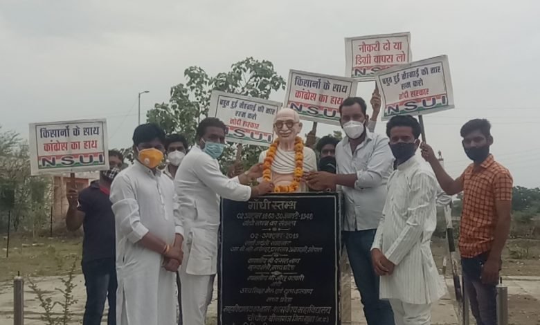 बीनागंज:-भारतीय राष्ट्रीय काँग्रेस छात्र संगठन द्वारा शासकीय महाविद्यालय चाचौड़ा बीनागंज परिसर में स्थित गांधी प्रतिमा के नीचे पेट्रोल डीजल के बढ़ते दाम व बढ़ती हुई मंहगाई , कोरोना संकट लॉकडाउन के दोरान बढ़ी बेरोजगारी के खिलाफ सांकेतिक धरना प्रदर्शन किया। धरना प्रदर्शन का शुभारम्भ गाँधी जी प्रतिमा पर विधायक प्रतिनिधि कैलाश चौकसे, प्रदीप सोनी, गजेंद्र सिंह चौहान, नारायण सिंह भील, एनएसयूआई प्रदेश महासचिव सौरव यादव, किसान कल्याण संघ प्रदेश अध्यक्ष शिवराज मीणा देदला, सर्जन सिंह शिल्पकार जिला महासचिव आईटी सेल काँग्रेस आदि ने पुष्पहार अर्पण कर किया। मीडिया बंधुओं से चर्चा के दौरान NSUI प्रदेश महासचिव सौरव यादव ने बताया की पेट्रोल-डीजल के दाम में हो रही बेतहाशा बढ़ोतरी से महंगाई दर बहुत बढ़ गयी है। पेट्रोल और डीजल की बढ़ती कीमतों ने मध्यम वर्गीय परिवारों के बजट पर काफी असर डाला है। राज्य मे आर्थिक, सामाजिक, स्वास्थ्य, चिकित्सा व्यवस्था बेहाल है। कोविड-19 महामारी ने भारत को इस समय अपने सबसे खराब और सबसे चुनौतीपूर्ण दौर में पहुंचा दिया है न सिर्फ लोग बीमार हो रहे है बल्कि मर भी रहे है स्वास्थ्य सेवाएं भी चरमराती नजर आती है। कोरोना संकट व लॉकडाउन के चलते पैदा हुआ आजीविका का संकट खत्म होने का नाम नही ले रहा। एक साल बाद भी युवा, मजदूर, मध्यम वर्गीय लोग बेरोजगारी की समस्या से उबर नही पाये है। धरना प्रदर्शन के दौरान कोरोनावायरस का पूर्ण से पालन किया गया