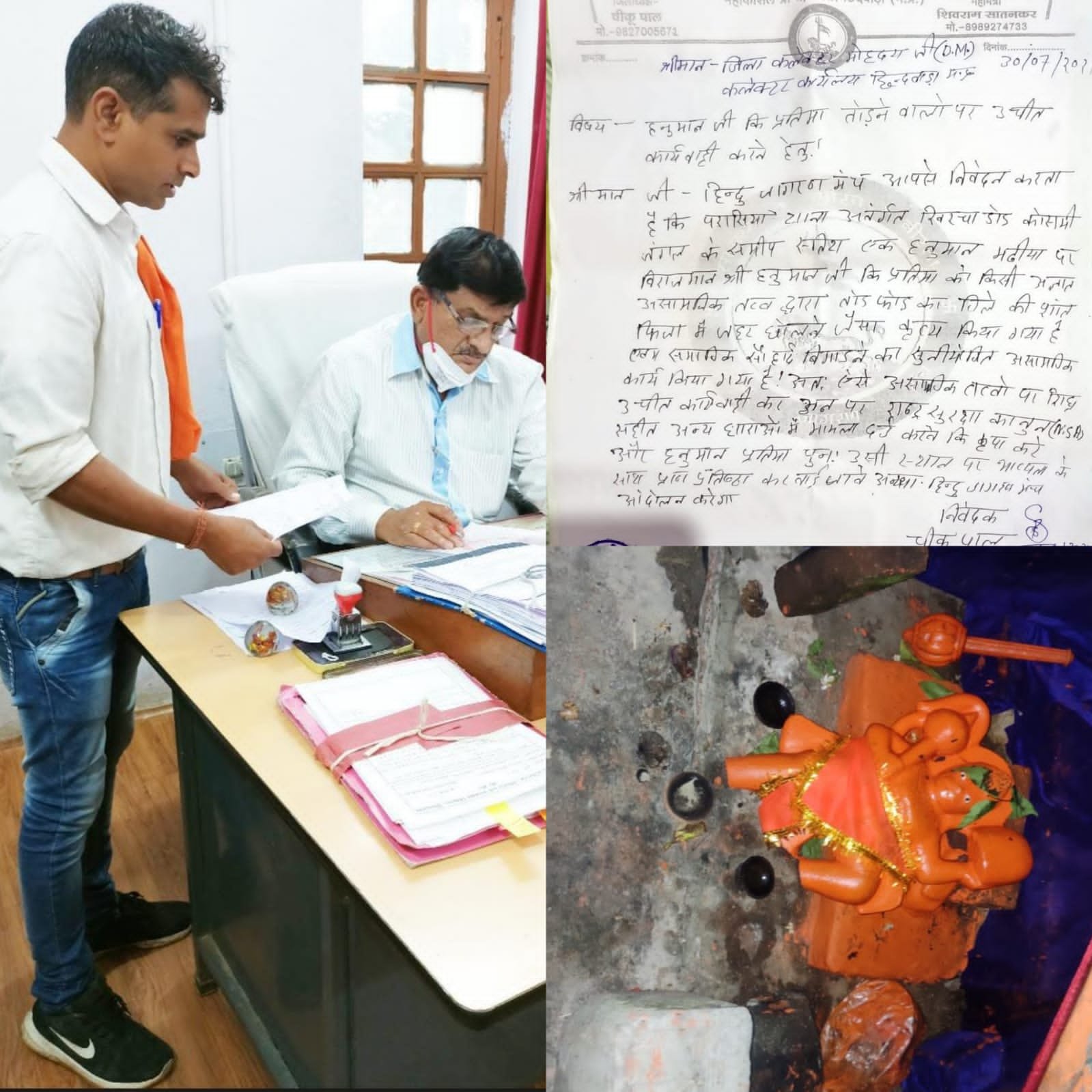 ज्ञानेश्वर विश्वकर्मा की रिपोर्टश्रीहनुमान जी की प्रतिमा टूटने पर हिन्दू जागरण मंच ने जताया रोष