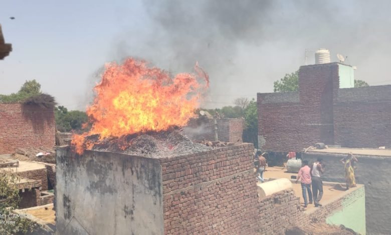झौंपड़ियों में लगी आग जिसमें अशोक कुमार पुत्र राजपाल सिंह का गाँव के बाहर घेर है जिसमें बुरजी बिटोरे तथा गाय बंधी थी आग लगने से गाय बुरी तरह झुलसकर मर गई एवं अन्य सामान जलकर राख हो गया