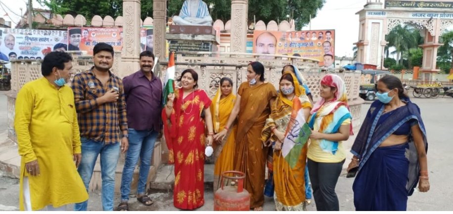 बढ़ती मंगाई के विरोध में महिला कांग्रेस ने किया गांधी चौराहे पर भाजपा केंद्र सरकार के विरोध में किया प्रदर्शन