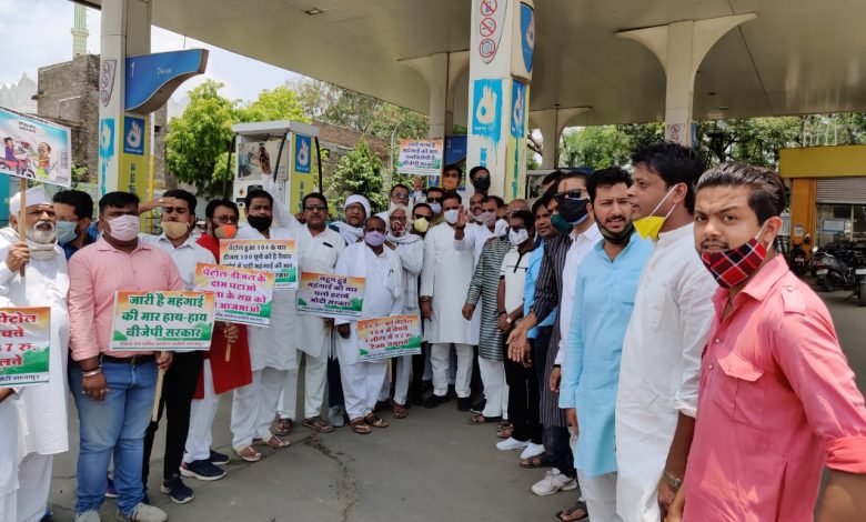 पेट्रोल-डीजल की बेतहाषा मूल्यवृद्धि को लेकर सड़क पर उतरी कांग्रेस, मिठाई खिलाकर लोगों को दी समझाईस