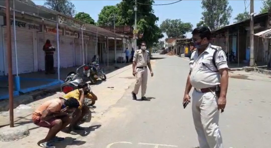 भालूमाड़ा पुलिस द्वारा जमुना में खुली दुकानों को कराया गया बंद तथा बेवजह घूमने वालों को लगवाई उठक बैठक