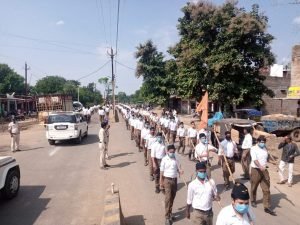 शाढ़ौरा -शाढ़ौरा में राष्ट्रीय स्वयं सेवक संघ का निकला पथ संचलन