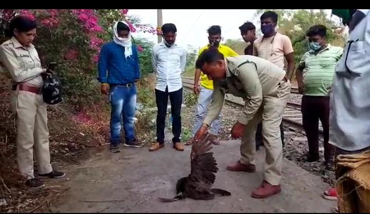 रेल्वे ट्रेक पर मृत अवस्था मे मिला राष्ट्रीय पक्षी मोर सामाजिक कार्यकर्ताओ ने वन विभाग को दी सूचना।