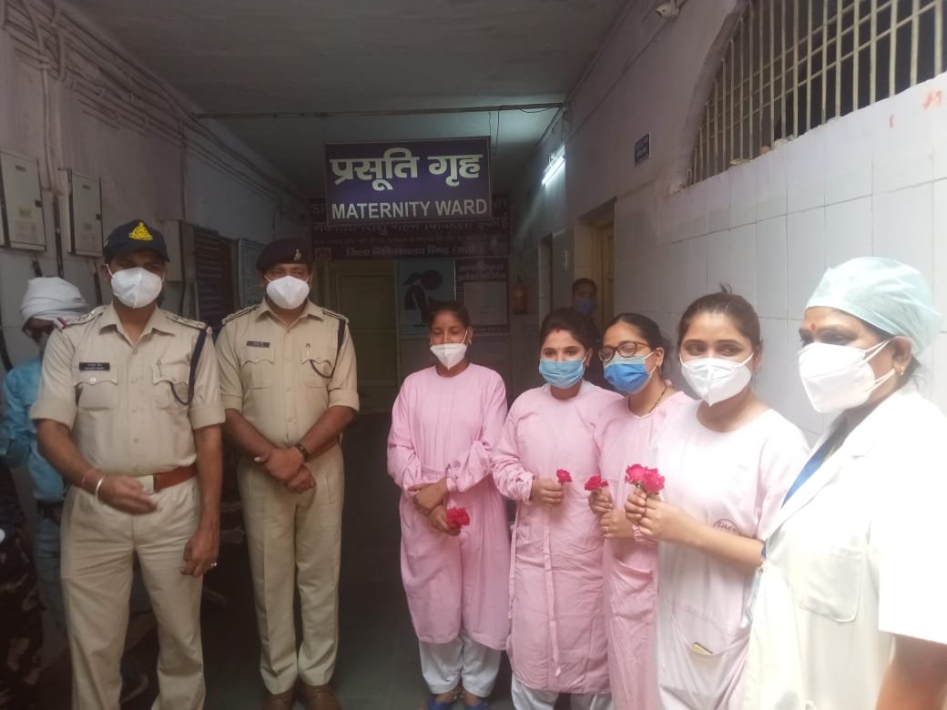 भिंड जिला अस्पताल में आज बुधवार के रोज अंतरराष्ट्रीय नर्स डे के अवसर पर जिले के तमाम पुलिस अधिकारियों ने जिला अस्पताल पहुंचकर कोरोना काल में जी जान से मेहनत कर लोगों की जान बचाने वाली महिला नर्स का गुलाब का फूल देकर सम्मान करते हुए उनका हौसला अफजाई किया दरअसल अंतरराष्ट्रीय नर्स डे के अवसर पर महिला डीएसपी पूनम थापा सहित पुलिस के तमाम आला अधिकारियों ने अस्पताल पहुंचकर इस वैश्विक महामारी में अपनी जान जोखिम में डालकर काम करने वाली ऐसी महान नारी शक्तियों का गुलाब का फूल देकर सम्मान करते हुए उनका मनोबल बढ़ाया है महिला डीएसपी पूनम थापा ने कहा इस दौर में जहां लोग घरों से निकलने में डर रहे हैं ऐसे में यह महिला स्टाफ नर्सों के द्वारा कोरोना संक्रमित मरीजों का इलाज अपनी जान जोखिम में डालकर कर रही हैं इनके इस महान काम को देखते हुए अंतर्राष्ट्रीय नर्स डे के अवसर पर इनका हौसला अफजाई करने के लिए इन सब को सम्मानित किया गया है। इस मौके पर सीएसपी आनंद राय , D S P हेडक्वार्टर मोतीलाल कुशवाह ,महिला डीएसपी पूनम थापा, ट्रैफिक इसपेक्टर सेंगर जी, सब इंस्पेक्टर नागेश शर्मा, एएसआई गौरी शंकर यादव,आदि लोग मोजूद थे