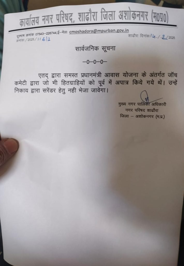 शाढ़ौरा नगर परिषद में प्रधानमंत्री आवास योजना के तहत आवास राशि में हो रही देरी के कारण शुक्रवार को दो सौ से अधिक लोग नगर परिषद कार्यालय में इकट्ठा हो गए और जोरदार नारेबाजी की। प्रदर्शनकारियों ने आरोप लगाया कि नगर परिषद अध्यक्ष अशोक माहौर और सीएमओ प्रशासन के खिलाफ अनदेखी कर रहे हैं और उन्होंने जल्द से जल्द आवास राशि जारी करने की मांग की।