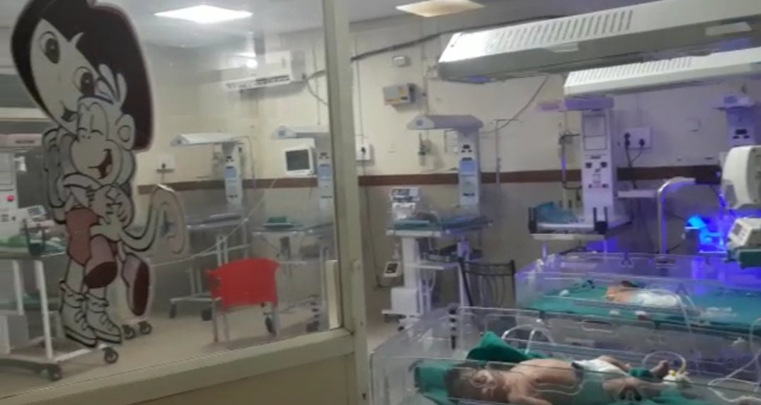 शार्टसर्किट से लगी अस्पताल के एयरकंडीशनर मे आग मचा हडकंप 18 नवजात शिशु वार्ड मे थे भर्ती 4 बच्चों को नर्स ने गोद मे उठाया टला बडा हादसा